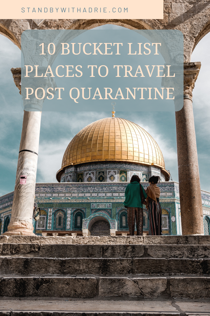 As a result of the COVID pandemic, we have all lost time that we could’ve used experiencing new places. Many are wondering where they should go after the pandemic passes and quarantine is over. I know we are itching to travel, so I wanted to create this list to inspire your post quarantine travels. On this list are places that I have visited or aspire to visit! Here is my list of destinations that should be on your post quarantine travel bucket list.
